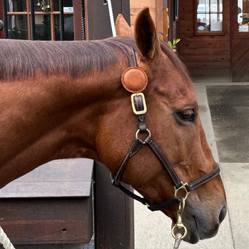 The eWell Halter Puck can slide onto the top of your horse’s halter and is durable enough to 'weather' wearing during turnout.