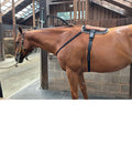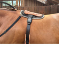 The eWell Therapy Pad consists of 6 eWell Pucks in series in a beautiful, rugged leather pad which sits astride the horse's spine at the withers. Flexible and comfortable for hours of wearing, it sits on a Toklat pad with girth loops for the leather girth that it comes with. It has D-rings for the elastic breast plate which is also included. It also comes with a copper grounding girth, grounding wire and outlet checker.